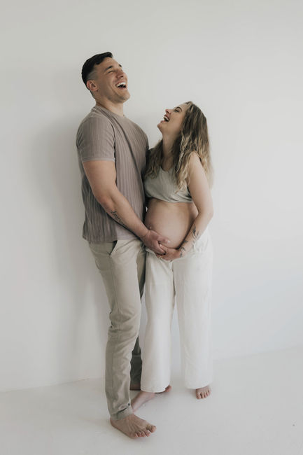 Die ideale Zeit für ein Babybauchshooting ist ab der 30. SSW, da der Bauch zu dieser Zeit schon gut sichtbar ist.